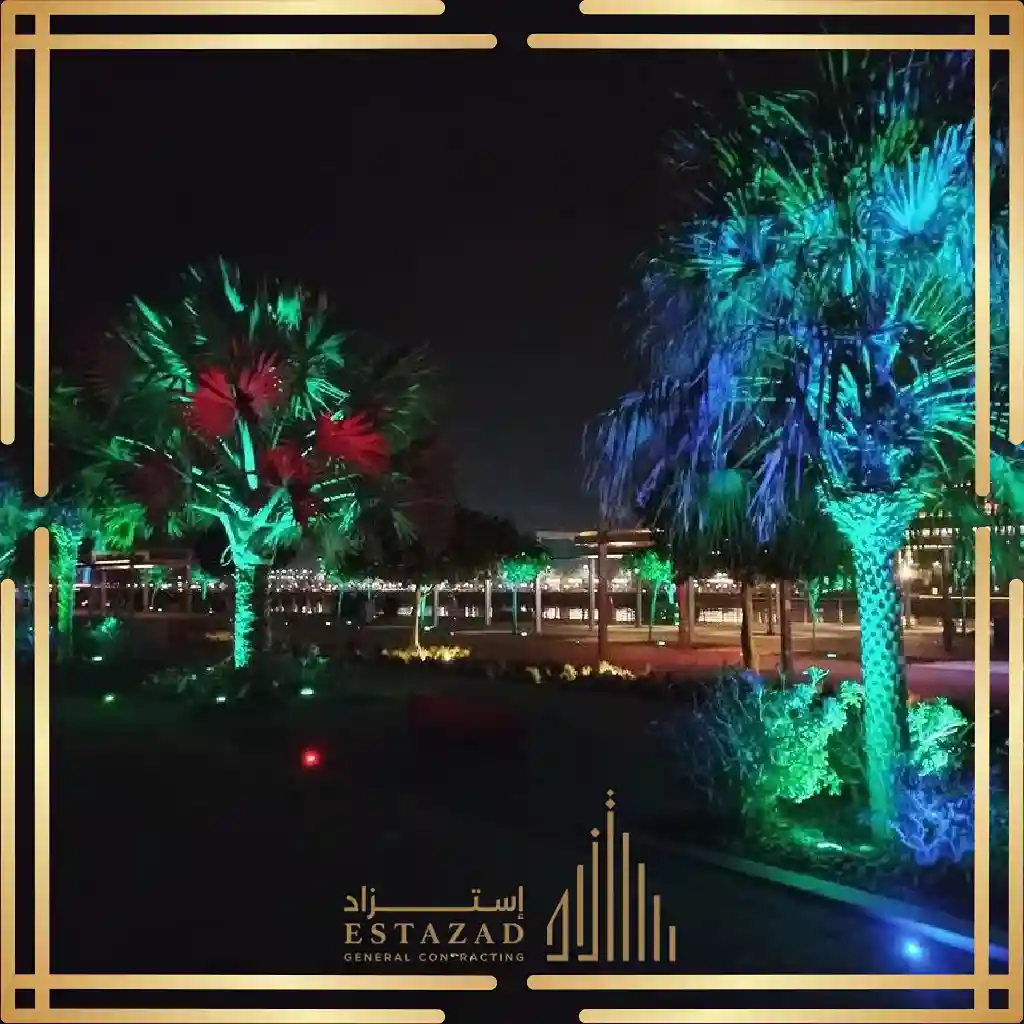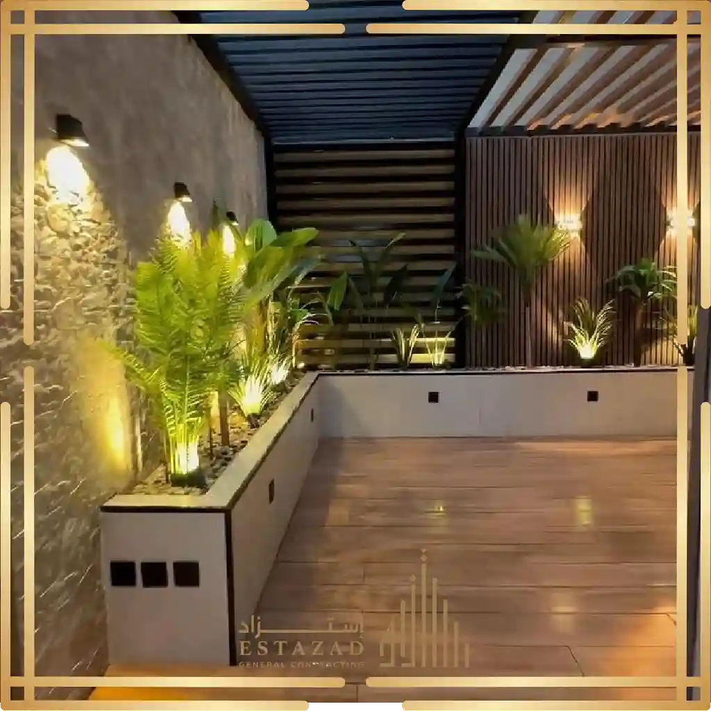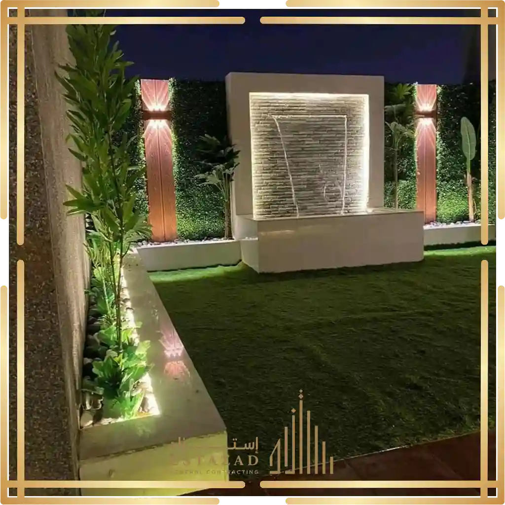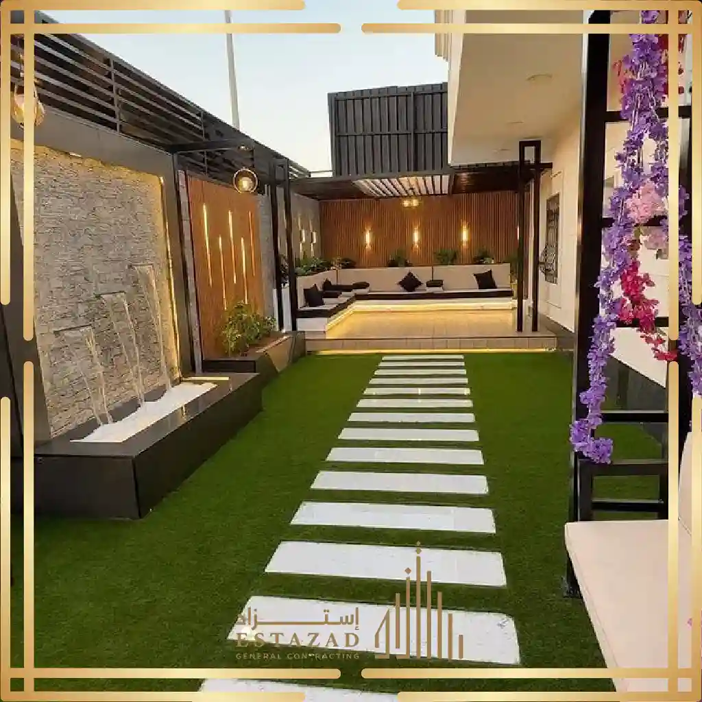 في مؤسسة استزاد للمقاولات العامة بالرياض نقدم خدمات اللاند سكيب المتكاملة تشمل تصميم وتنسيق المساحات الخضراء و تركيب العشب الطبيعي أو الصناعي و إنشاء أحواض الزهور و زراعة الأشجار والنباتات إضافة إلى تركيب عناصر ديكورية مثل الحجر الطبيعي أو بديل الحجر، الممرات، المقاعد، والنوافير، مع مراعاة توزيع الإضاءة الخارجية لتبرز جمال المكان في الليل والنهار
