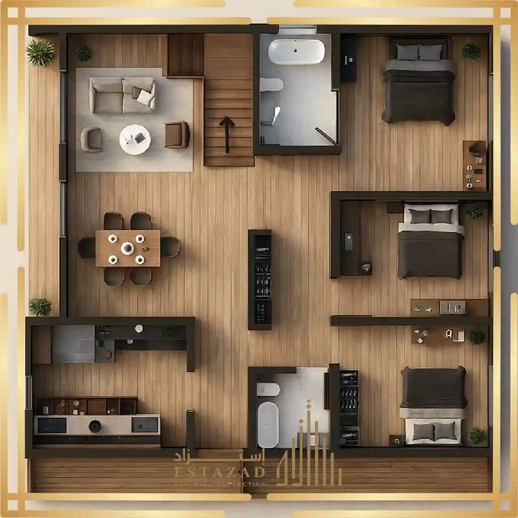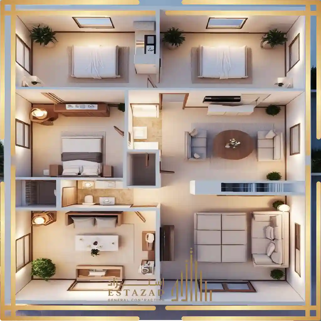 مع مؤسسة استزاد للمقاولات العامة بالرياض ستحصل على تصميم معماري 2D و3D يوضح كل شيء من البداية، ويجعل مشروعك يسير بشكل أفضل في مرحلة التنفيذ، مع إمكانية دمج التصميم مع باقي خدماتنا مثل التأسيس، التشطيب، والتسليم على المفتاح داخل الرياض.